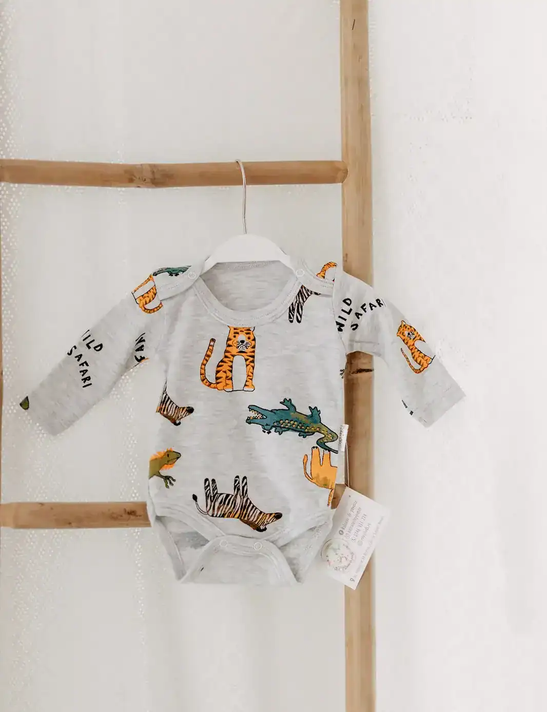 Body din bumbac moale, cu imprimeu vesel cu animăluțe. Confortabil și plăcut la atingere, ideal pentru purtare zilnică.