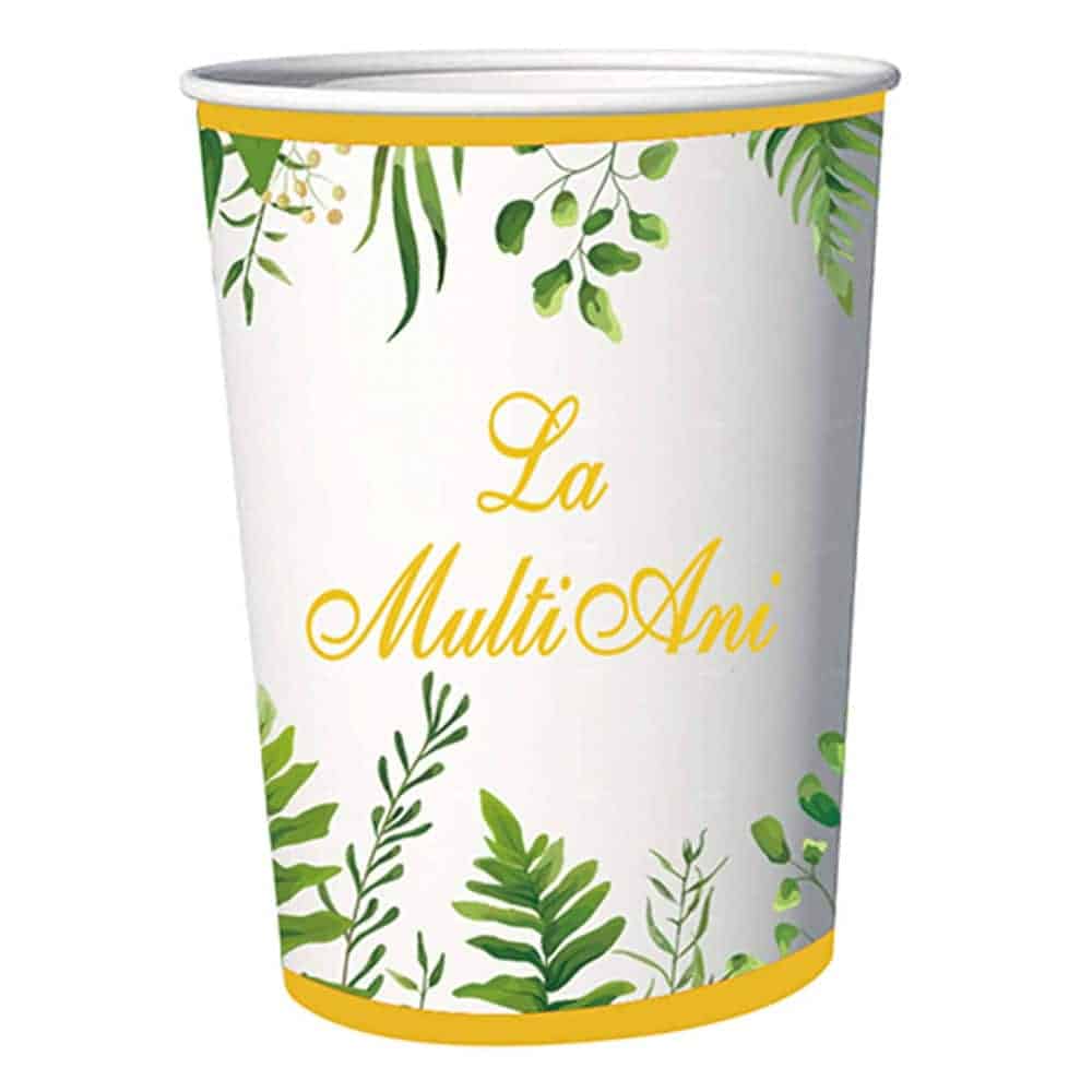 Pahare party cu detalii si text „La mulți ani!” cu o capacitate de 235 ml, perfecte pentru petrecerea ta!