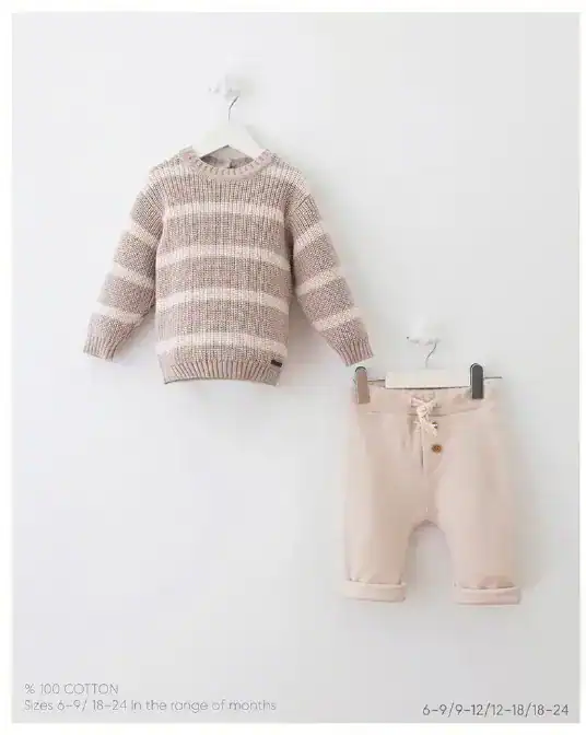 Setul contine pulover tricot si pantaloni bumbac.
