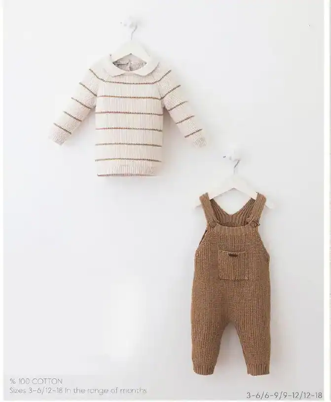 Setul contine salopeta si pulover tricot fin